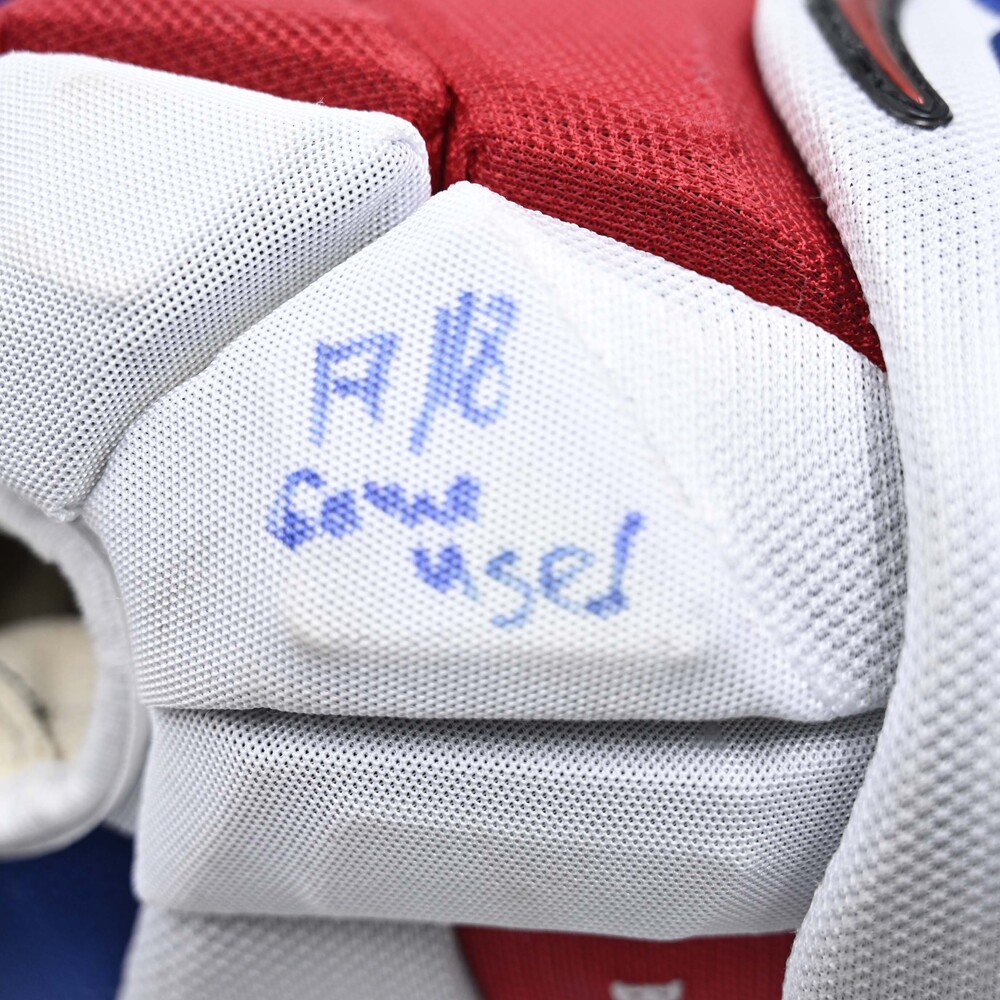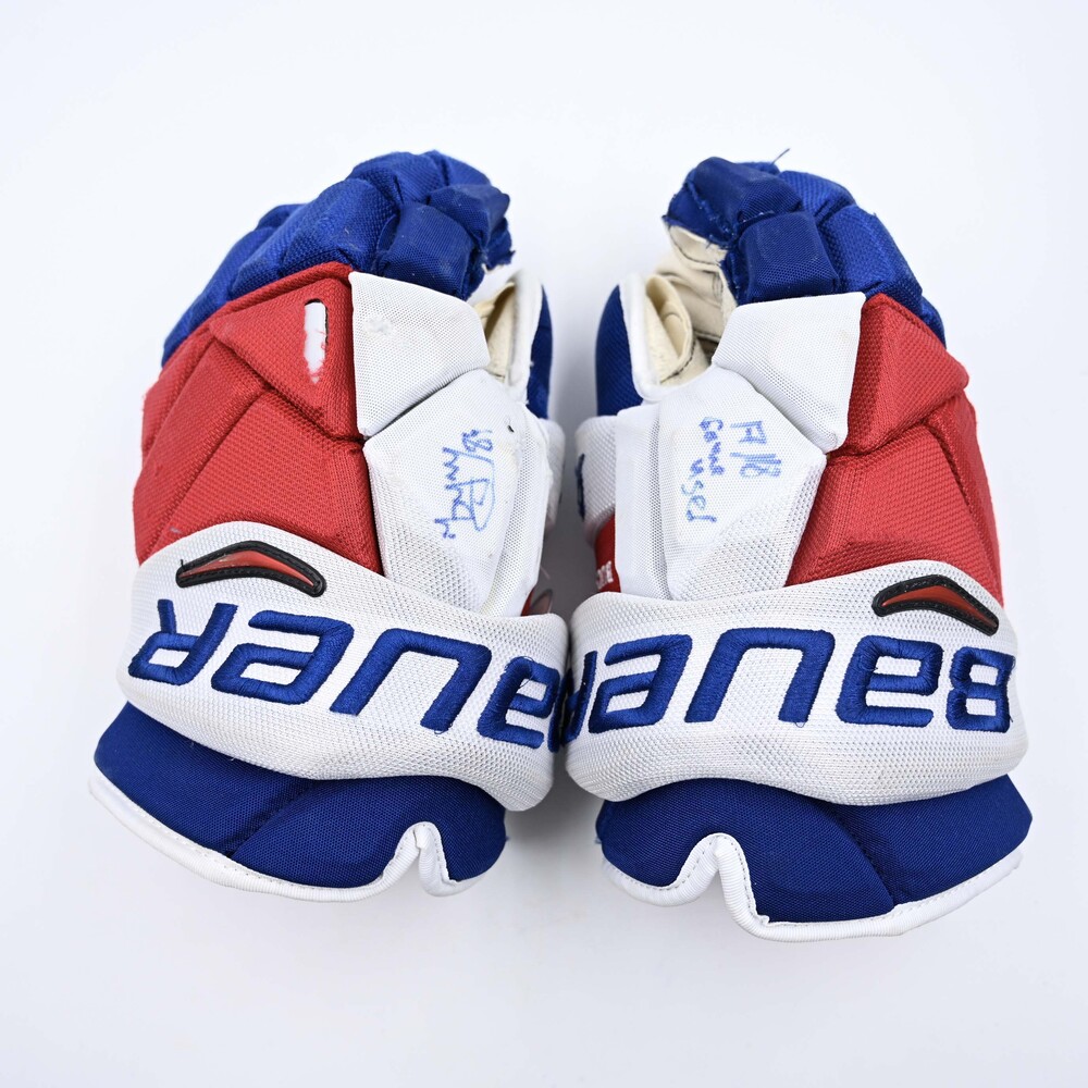 Pavel Buchnevich wore these Bauer Vapor 1X Pro gloves while playing for the New York Rangers during the 2017-18 National Hockey League season.
