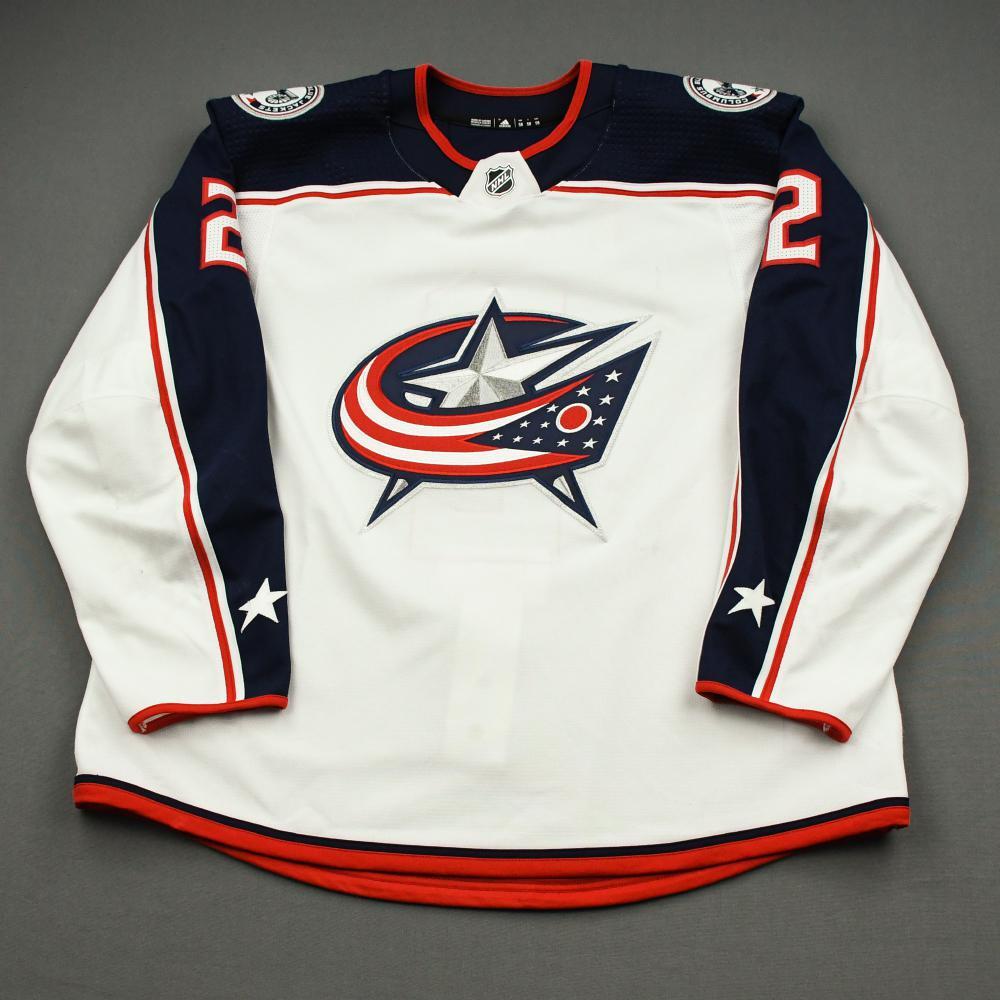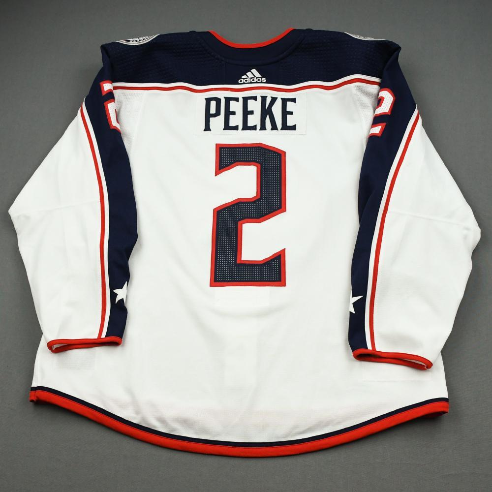 Andrew Peeke was wearing this White Set 1 jersey on February 16, 2020 when he scored his National Hockey League goal during the Columbus Blue Jackets' 4-3 loss to the New Jersey Devils at Prudential Center in Newark, NJ. The captain's "C" has been removed from the jersey.The Blue Jackets made the Stanley Cup Playoffs for the fourth consecutive season and for the sixth time in franchise history after finishing the 2019-20 regular season with 81 points (33-22-15) and defeating the Toronto Maple Leafs in five games during the 2020 Stanley Cup Qualifying Round.