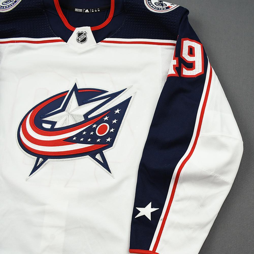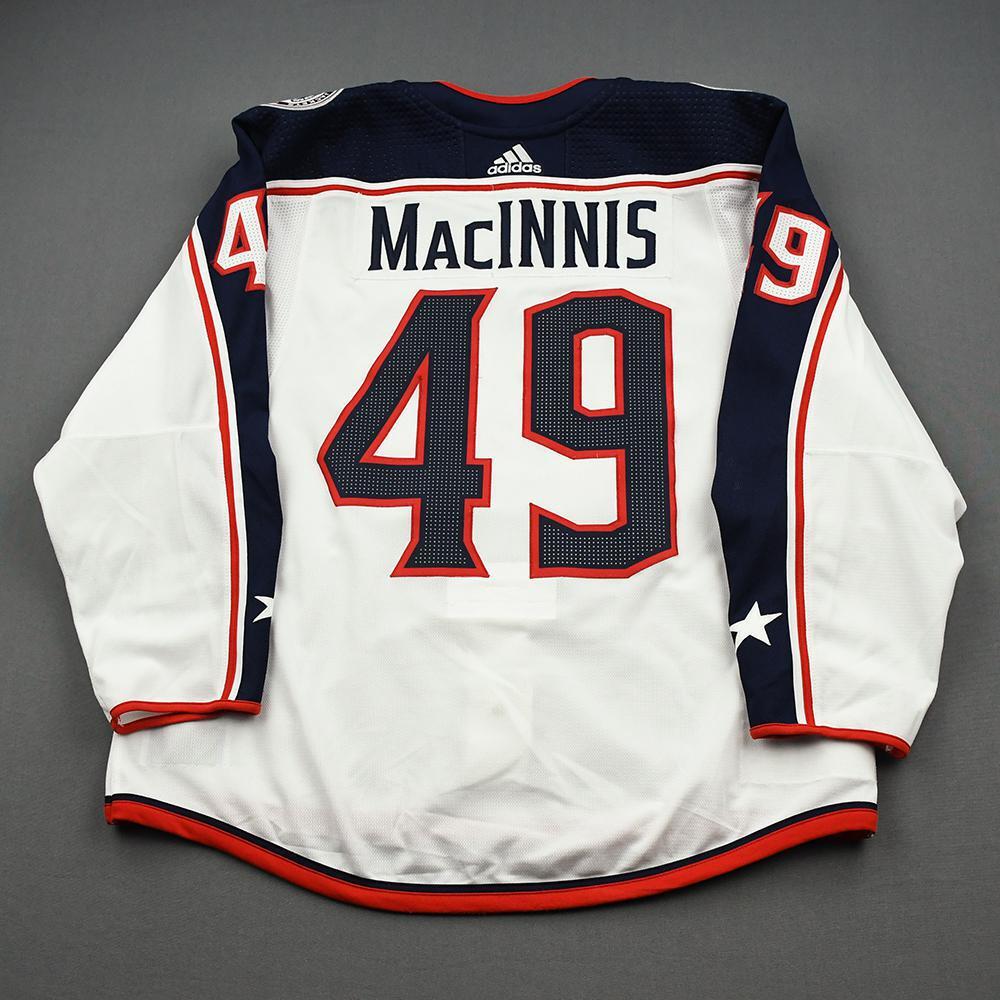 Ryan MacInnis wore this White Set 1 jersey from December 23, 2019 through January 2, 2020.Ryan MacInnis was wearing this White Set 1 jersey on December 27, 2019 when he registered his 1st National Hockey League point during the Columbus Blue Jackets' 2-1 loss to the Washington Capitals at Capital One Arena in Washington, DC.The Blue Jackets made the Stanley Cup Playoffs for the fourth consecutive season and for the sixth time in franchise history after finishing the 2019-20 regular season with 81 points (33-22-15) and defeating the Toronto Maple Leafs in five games during the 2020 Stanley Cup Qualifying Round.