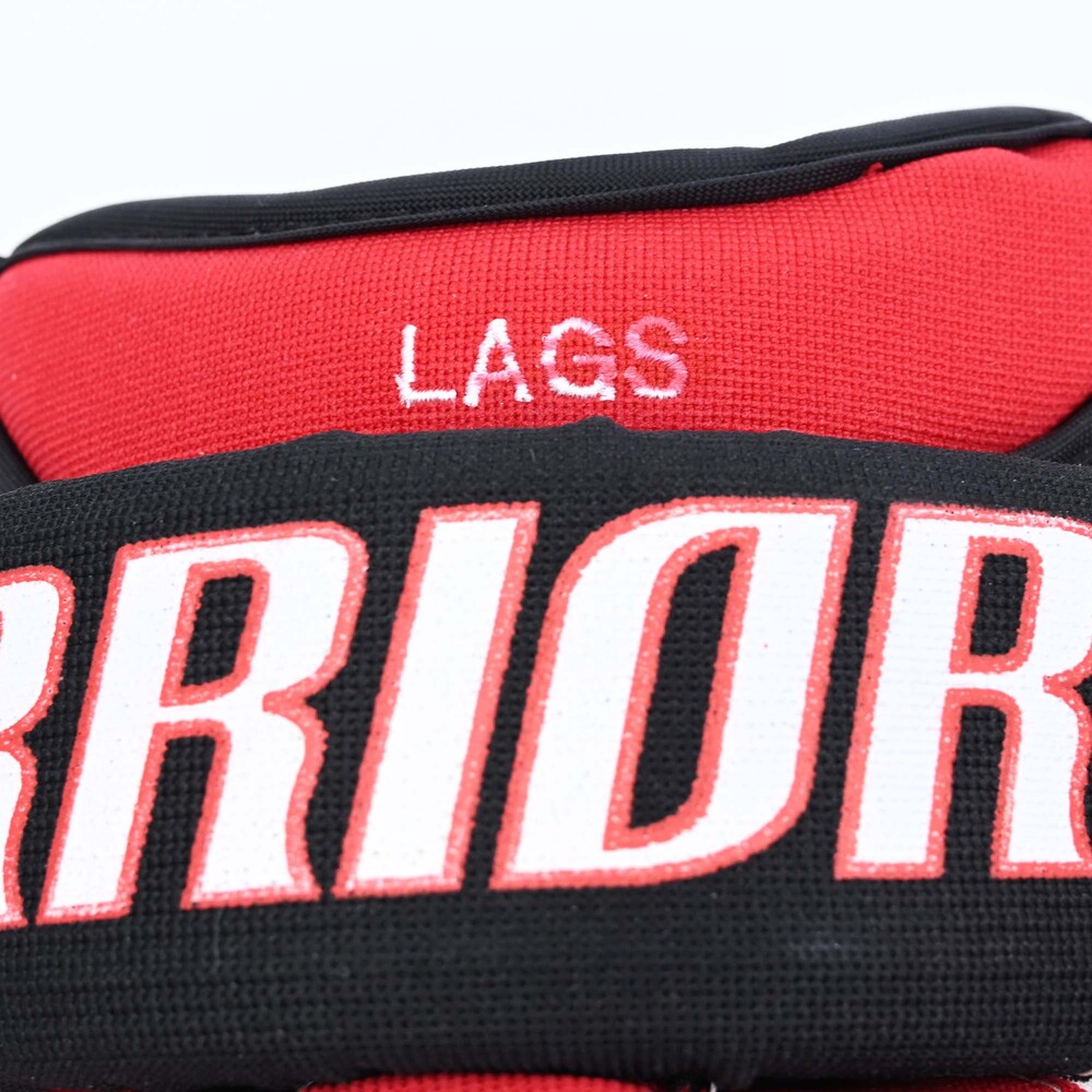 'LAGS' is stitched on the side of each glove.